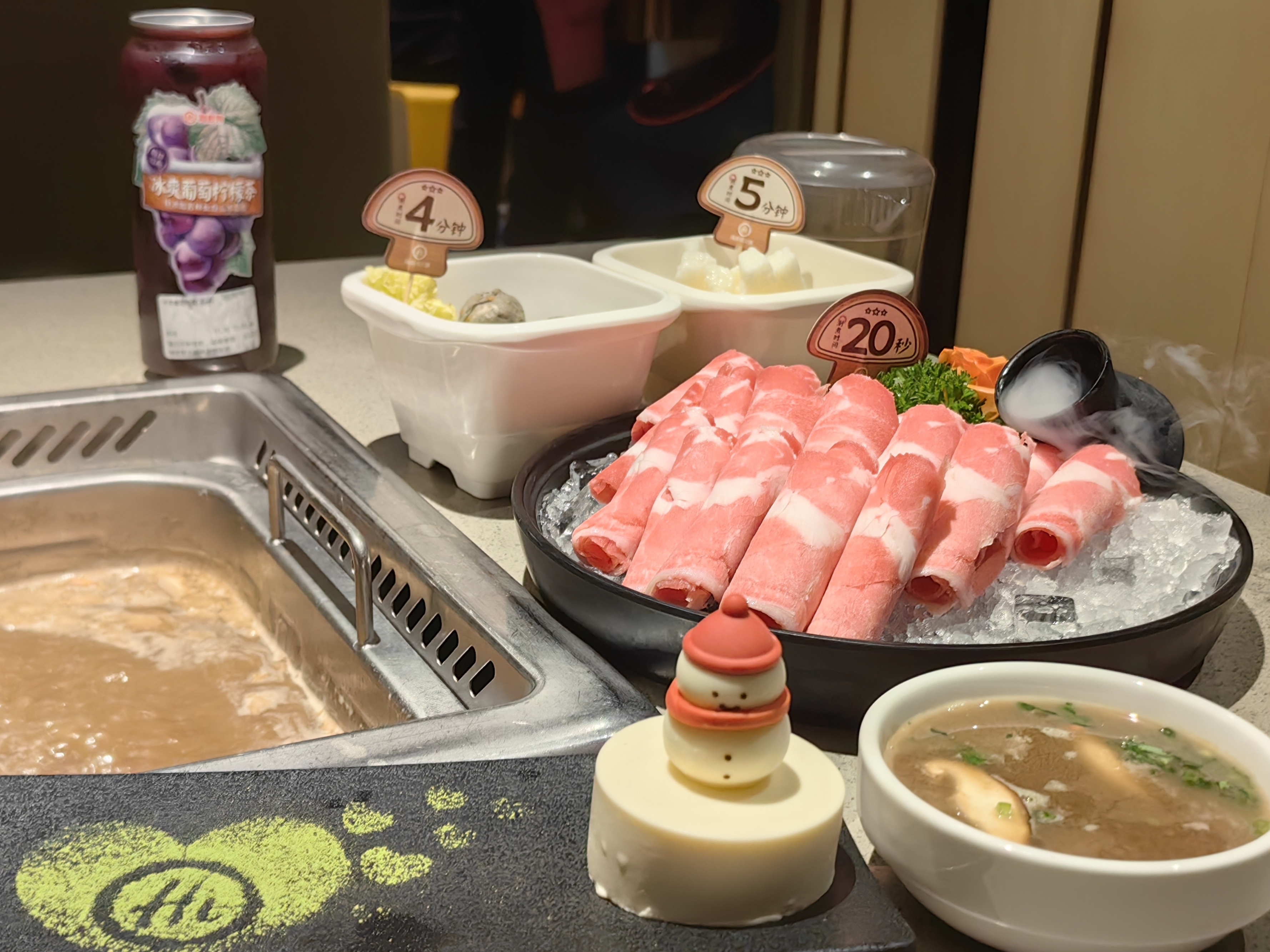 此外,海底捞上新涮品“云南文山红甸乡山药”,文山看成已有400多年山药培植历史的性情产区,因其先天不足的地舆环境,与悠久的培植历史而盛名,山药煮后口感软糯、绵密,亦然冬日里不行多得的温补佳品。饮品“冰爽葡萄柠檬茶”特添加吉林长白山冰葡萄,中国自主培育而成,每年北冰红葡萄熟谙后,要比及气温降到零下8度以下,果农才会趁冻采收,让风雪吹干水分后的葡萄果香更浓郁。奶呼呼豆浆发热友必吃的“雪东说念主豆浆蛋糕”,也皆凭借有颜有料,深受甜品爱好者的怜爱。