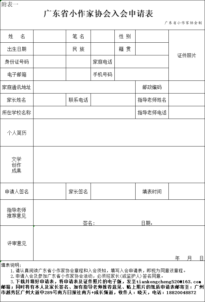附件: 广东省小作者协会入会肯求表