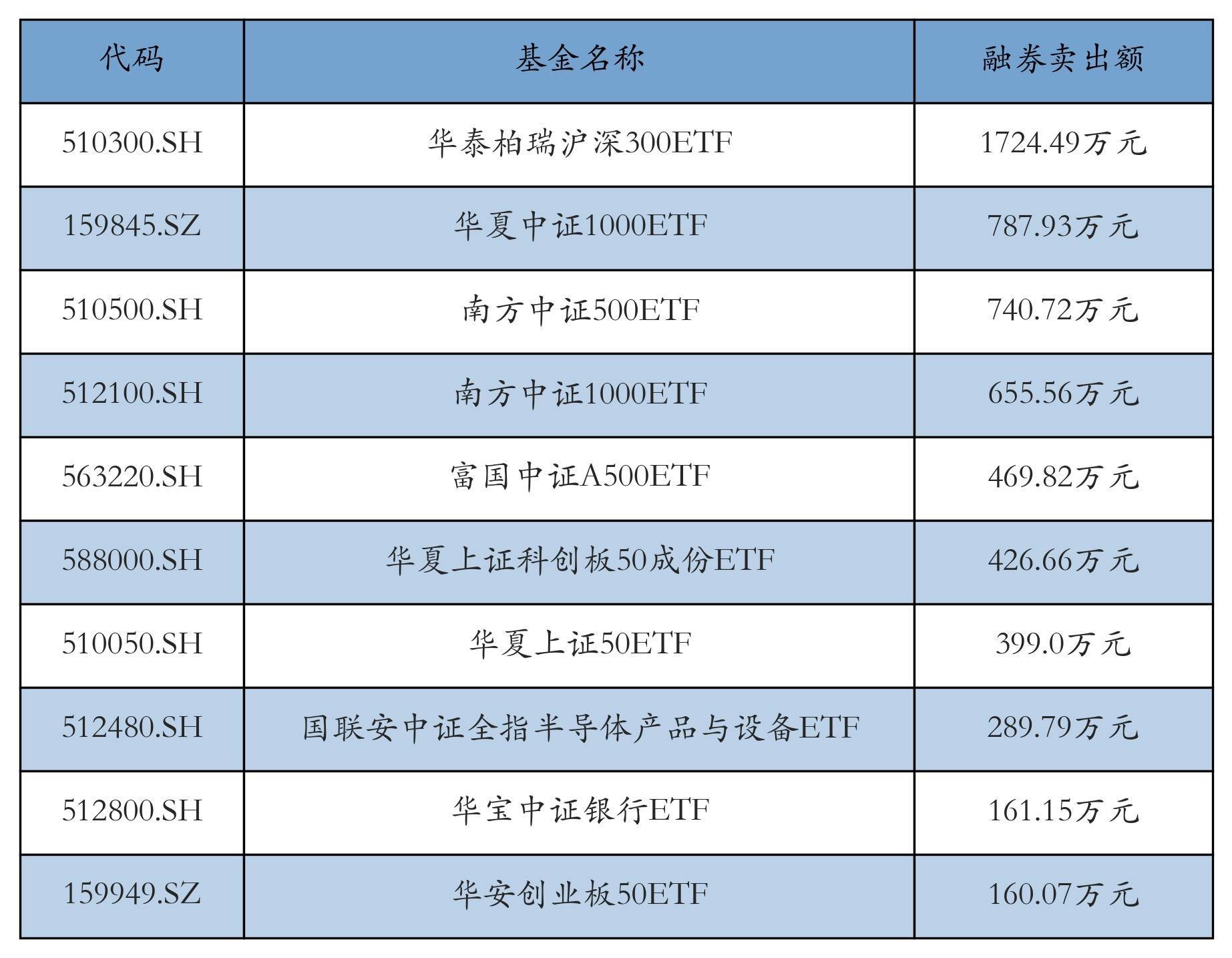 12月4日ETF融券卖出额前三位差异为:华泰柏瑞沪深300ETF(1724.49万元)、中原中证1000ETF(787.93万元)和南边中证500ETF(740.72万元),前10具体见下表:
