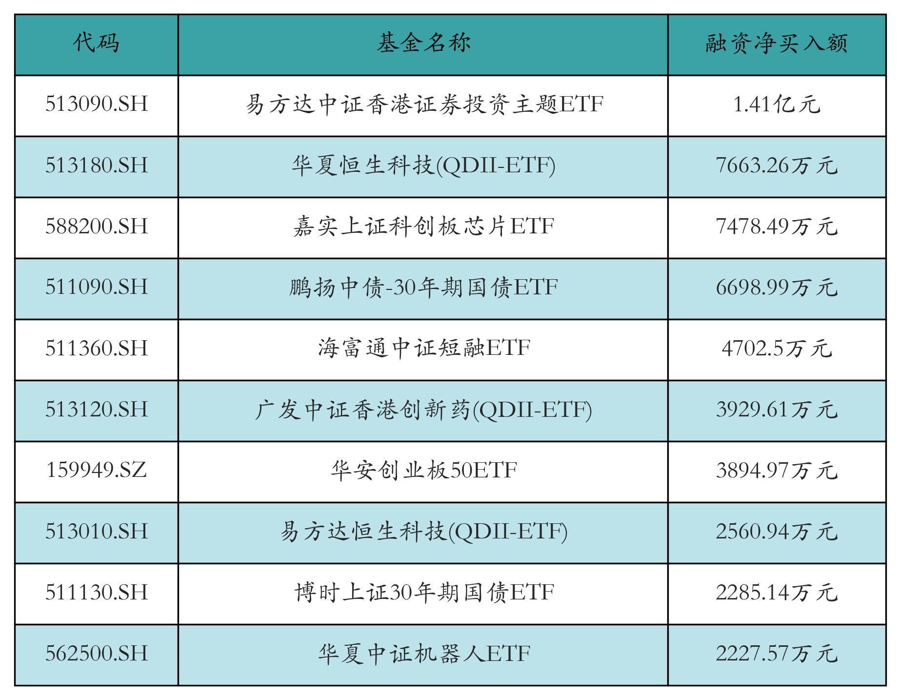 12月4日ETF融资净买入额前三位差异为:易方达中证香港证券投资主题ETF(1.41亿元)、中原恒生科技(QDII-ETF)(7663.26万元)和嘉实上证科创板芯片ETF(7478.49万元),前10具体见下表: